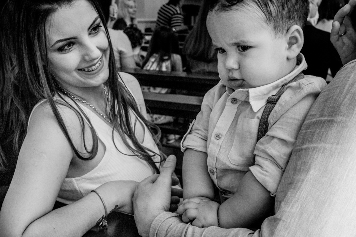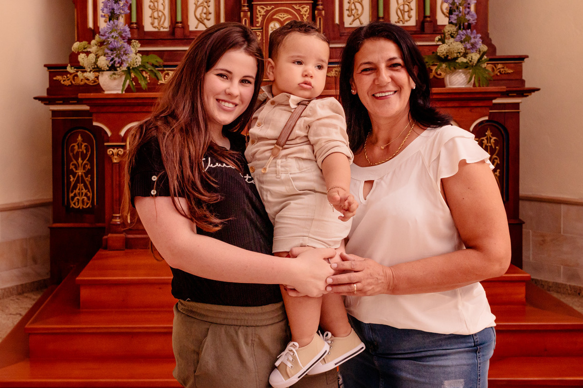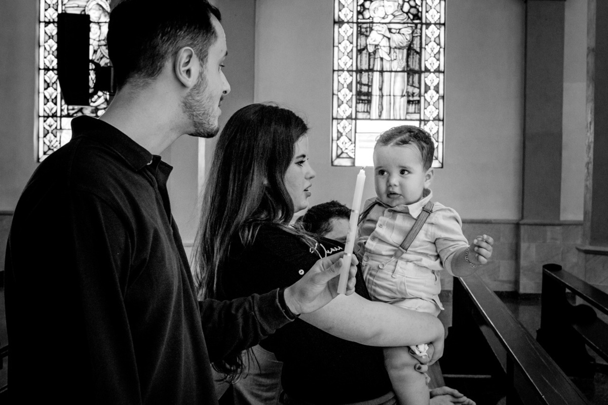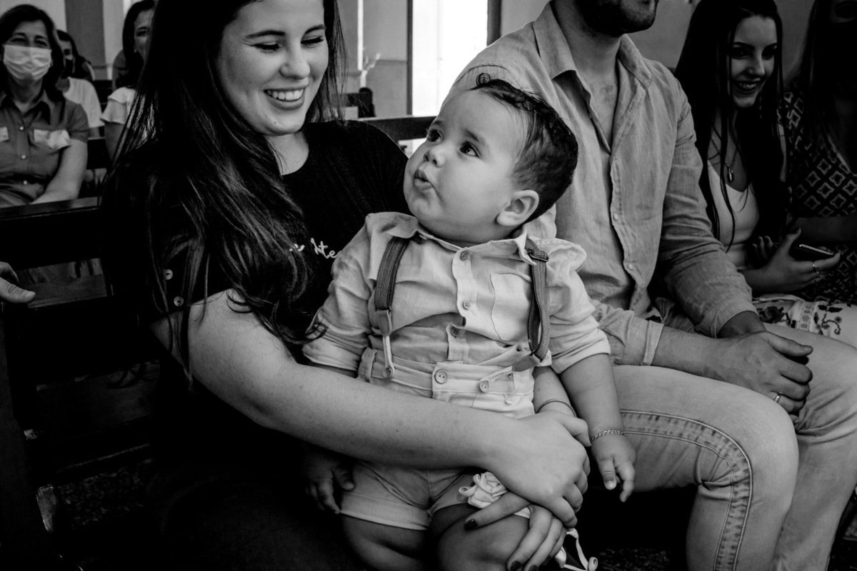O Batismo, o primeiro dos sacramentos. É no batismo também que ganhamos alguns "protetores extras". Proteger, amar, cuidar, educar e eventualmente mimar são apenas algumas das atribuições dos padrinhos. E o Davi está rodeado de amor, atenção e muito carinho. O pequeno é uma fofura: Muito esperto e curioso, adora uma careta com os dindos e naturalmente não perdeu a oportunidade de olhar o que estava acontecendo enquanto o celebrante derramava água sobre a sua cabeça!! Aii se eu aguento esses toquinhos de gente...