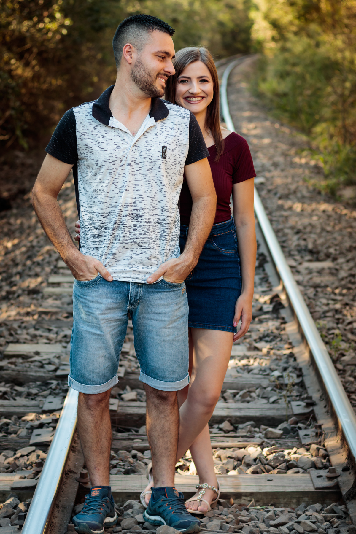 O ensaio fotográfico da Tatiana e do Fabiano foi realizado na Estação Férrea (e seus arredores) no interior do município de Roca Sales (RS). A Tati sempre foi apaixonada pelos trilhos e o local faz parte da história do casal. Quer razão mais forte para este ser o cenário principal da sessão fotográfica?