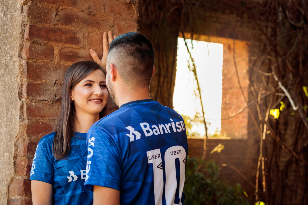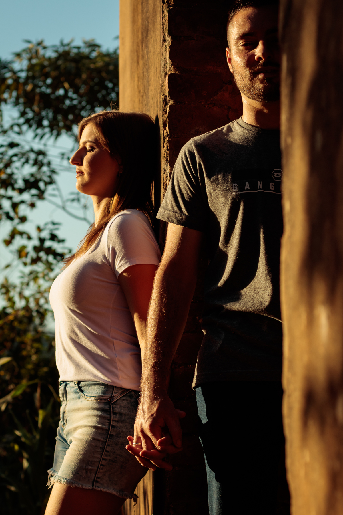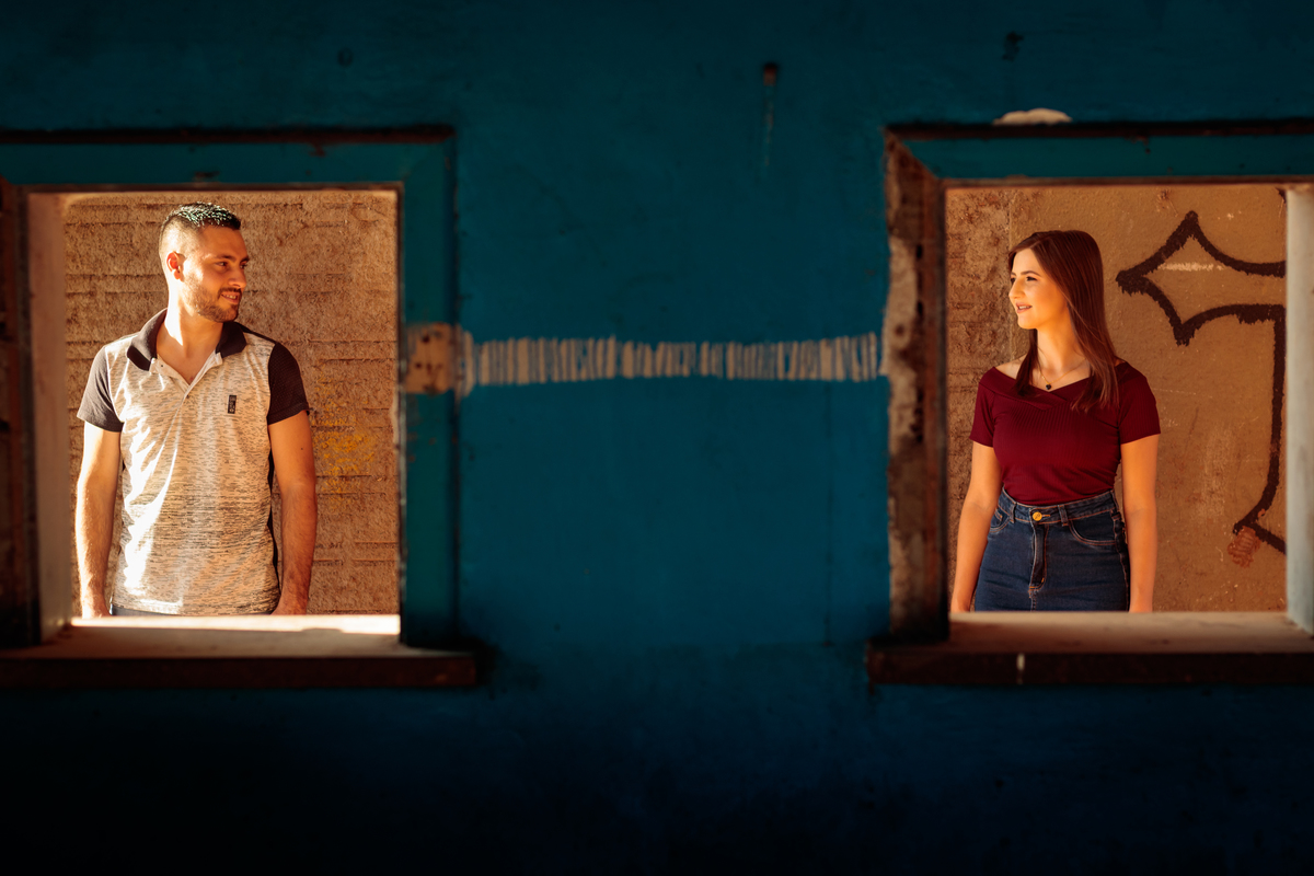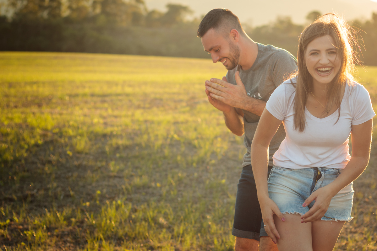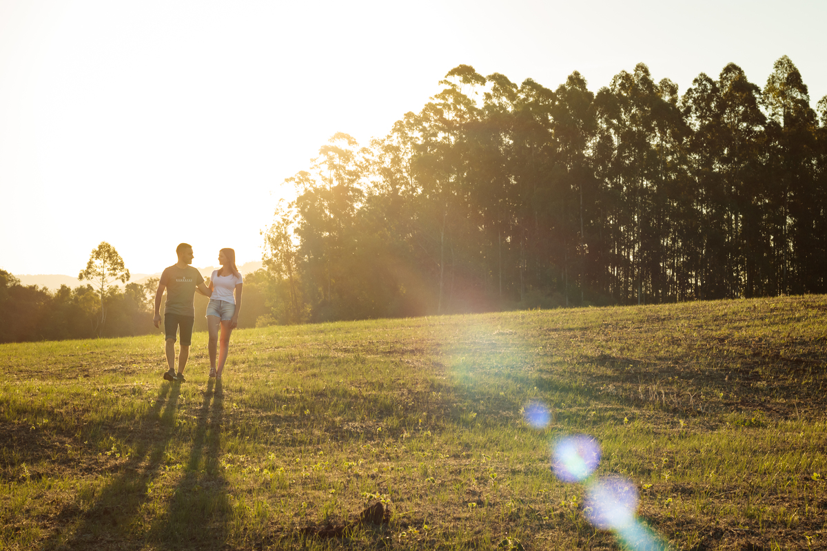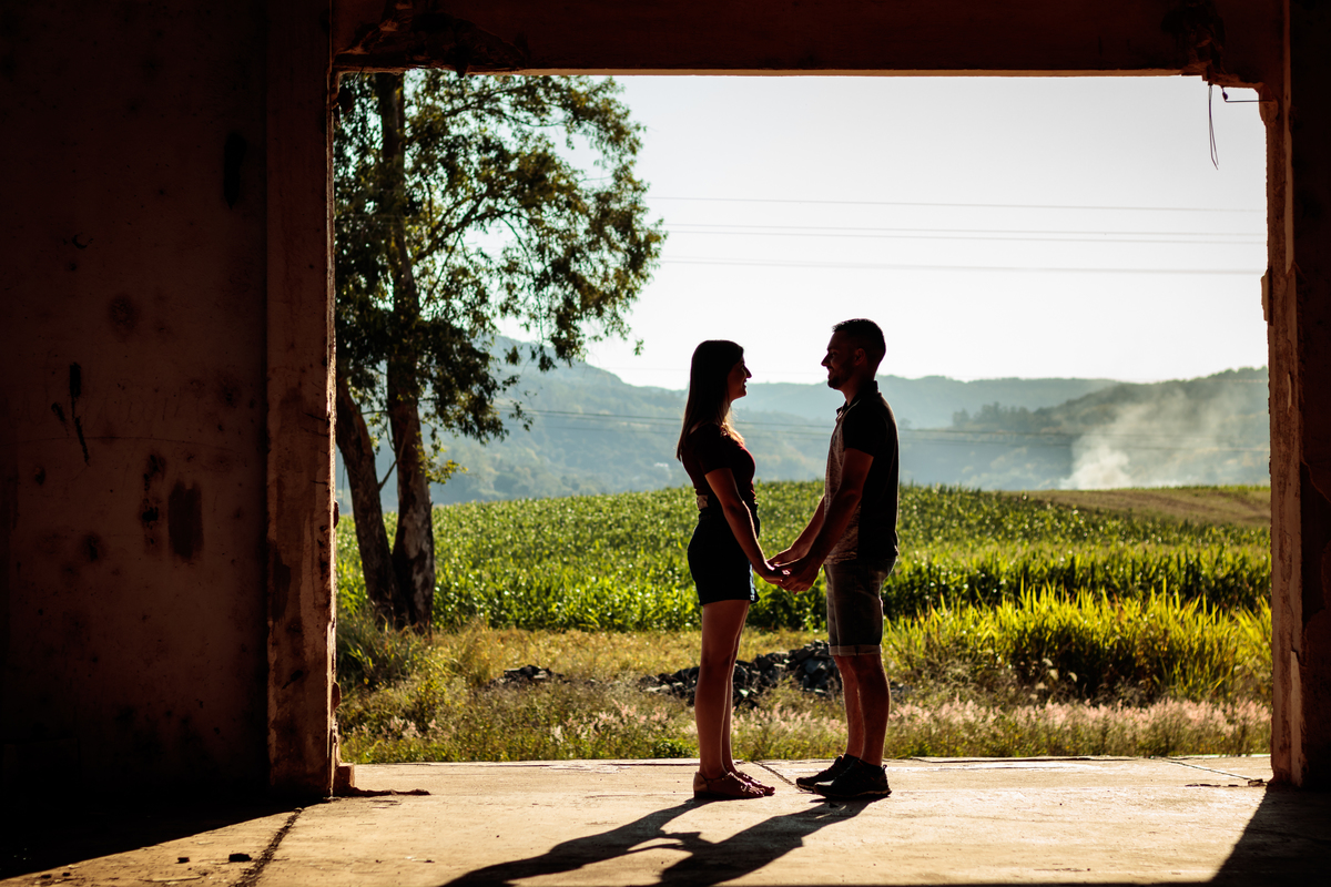 Apesar do pleno outono gaúcho, a tarde era de muito calor e sol forte. A estação ofereceu a sombra e o abrigo que precisávamos para o início do ensaio e os trilhos completam o charme do local. Charmoso também é o velho casarão que escolhemos para dar sequência as fotos. A figueira fixada nas paredes deixa em dúvida quem dá suporte a quem. E para finalizar e registrar o pôr-do-sol escolhemos um campo. O mesmo campo escolhido por dois cachorrinhos que se apaixonaram pelo casal e não teve conversa, tiveram que participar do ensaio. E o final de tarde foi um presente, um céu alaranjado, antecipando o dia seguinte de chuva. Era impossível parar de fotografar. Resultado, ainda fizemos mais uma parada no Porto de Roca Sales para encerrar com chave de ouro.
