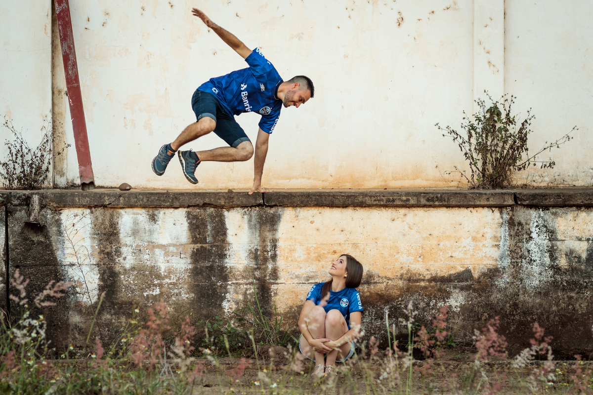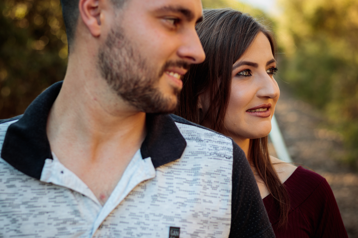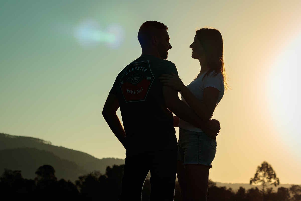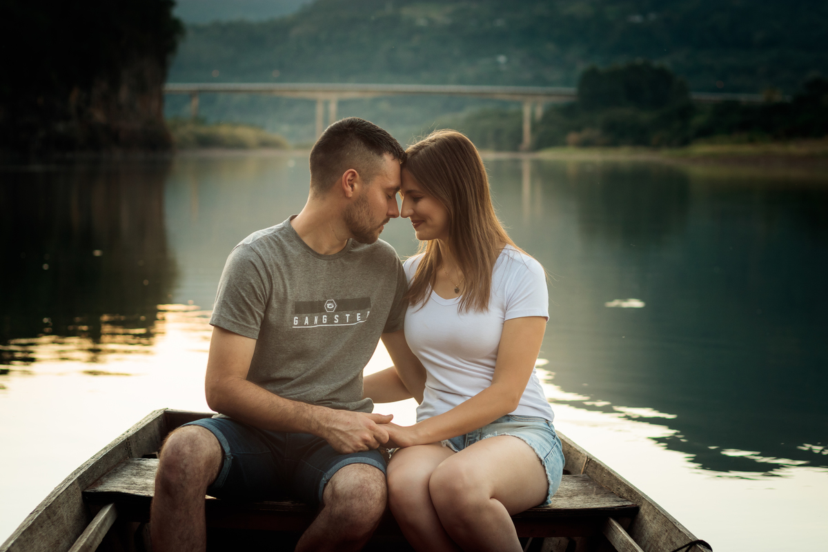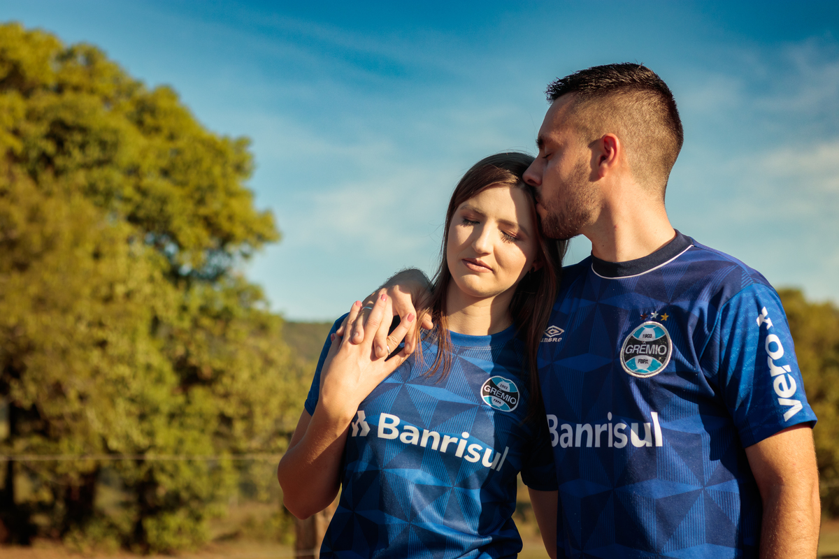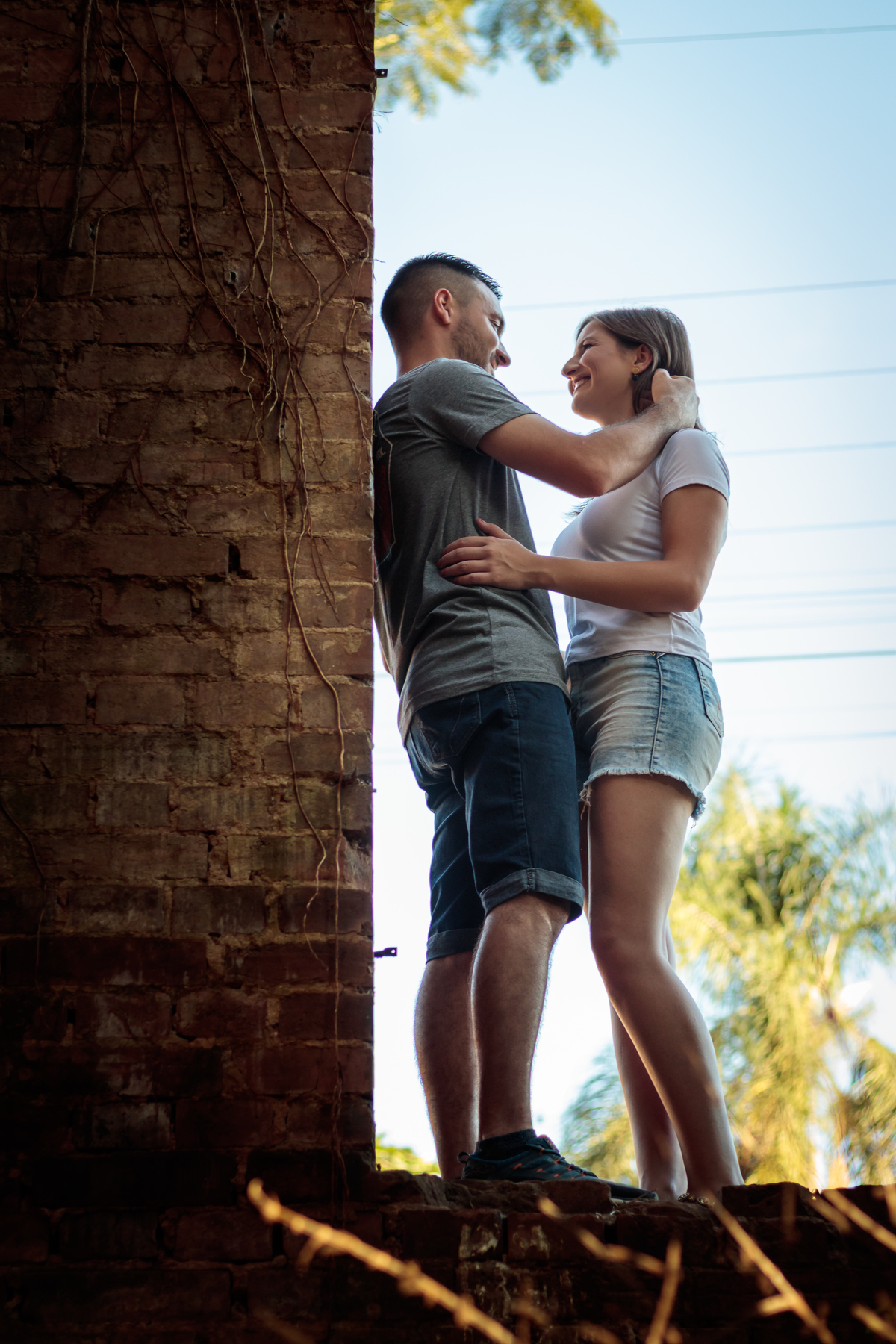 Apesar do pleno outono gaúcho, a tarde era de muito calor e sol forte. A estação ofereceu a sombra e o abrigo que precisávamos para o início do ensaio e os trilhos completam o charme do local. Charmoso também é o velho casarão que escolhemos para dar sequência as fotos. A figueira fixada nas paredes deixa em dúvida quem dá suporte a quem. E para finalizar e registrar o pôr-do-sol escolhemos um campo. O mesmo campo escolhido por dois cachorrinhos que se apaixonaram pelo casal e não teve conversa, tiveram que participar do ensaio. E o final de tarde foi um presente, um céu alaranjado, antecipando o dia seguinte de chuva. Era impossível parar de fotografar. Resultado, ainda fizemos mais uma parada no Porto de Roca Sales para encerrar com chave de ouro.