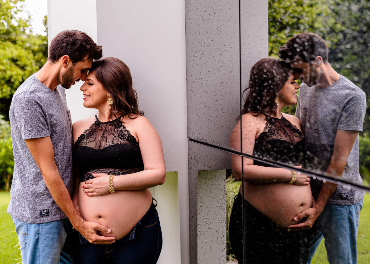 Para guardar para sempre as memórias da espera da pequena Ana Laura, a mamãe Gabi e o papai Alex escolheram como cenário a própria casa. Tínhamos outros planos, é verdade, iríamos para outro local finalizar o ensaio mas a chuva nos acompanhou do início ao fim. Resolvemos então ficar em casa e aproveitamos as pequenas pausas para correr para o jardim. O resultado foi um ensaio intimista, repleto de conexão amor e alegria pela chegada da pequena Ana Laura.