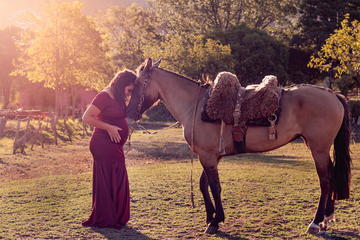 A Estefânia escolheu realizar o seu ensaio de gestante na propriedade da família, no interior de Arroio do Meio. O amor pela vida campeira e pelos cavalos foram somados a delicadeza do momento que retrata a espera da Taila.