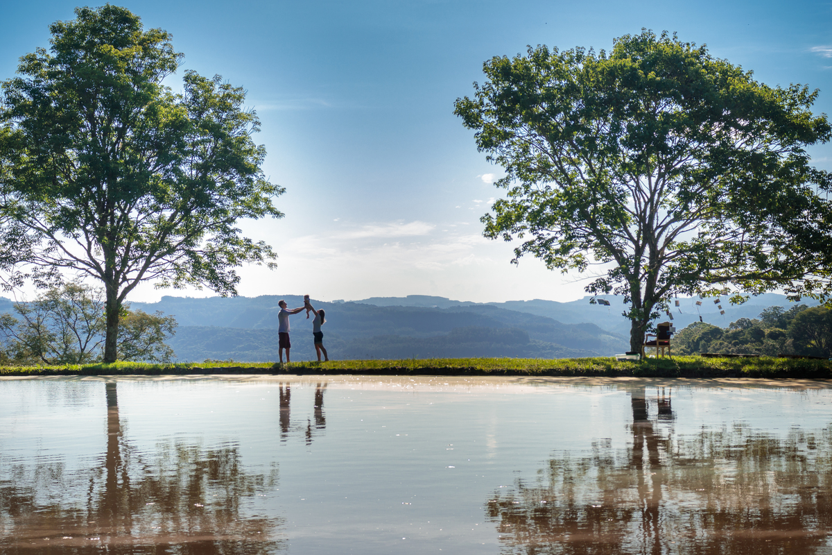 Quem tem criança sabe que a tarefa de pegar a estrada às vezes pode não ser nada fácil mas o Bruno é super calmo e por isso aproveitou o caminho para descansar. O lugar escolhido foi o Rancho Morro Alto, na cidade de Roca Sales/RS. Um lugar lindo e encantador!