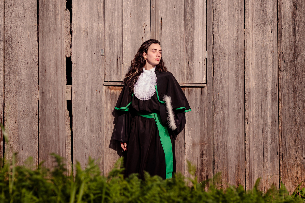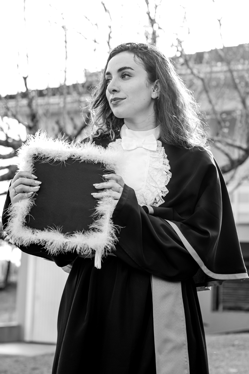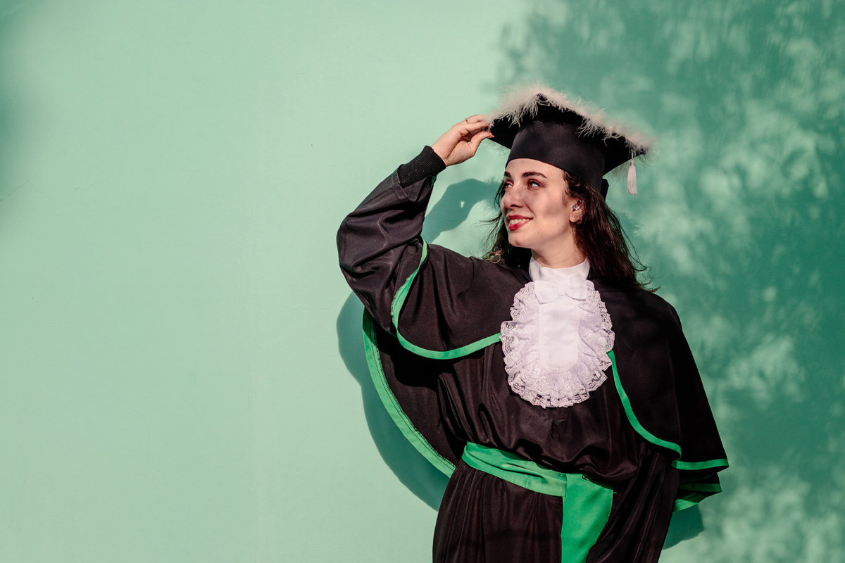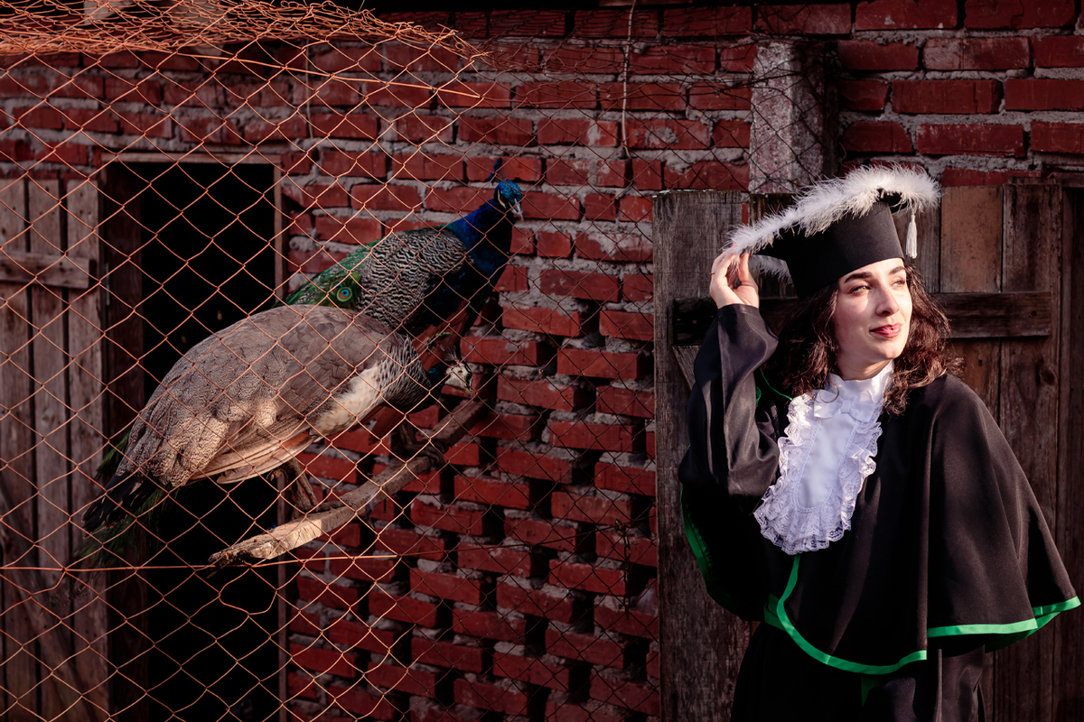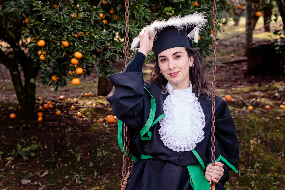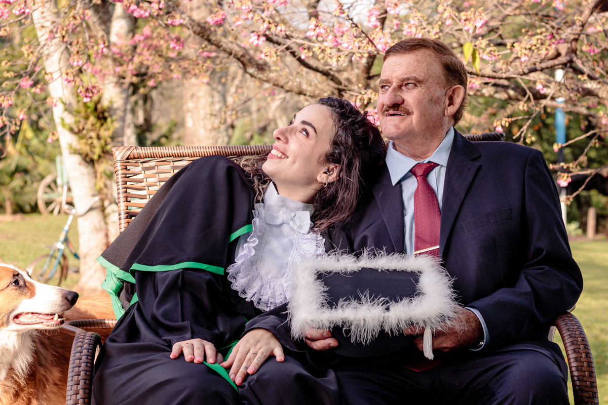 A Marina está se formando em Medicina Veterinária e escolheu a casa do seu avô em Muçum para registrar esse momento especial.